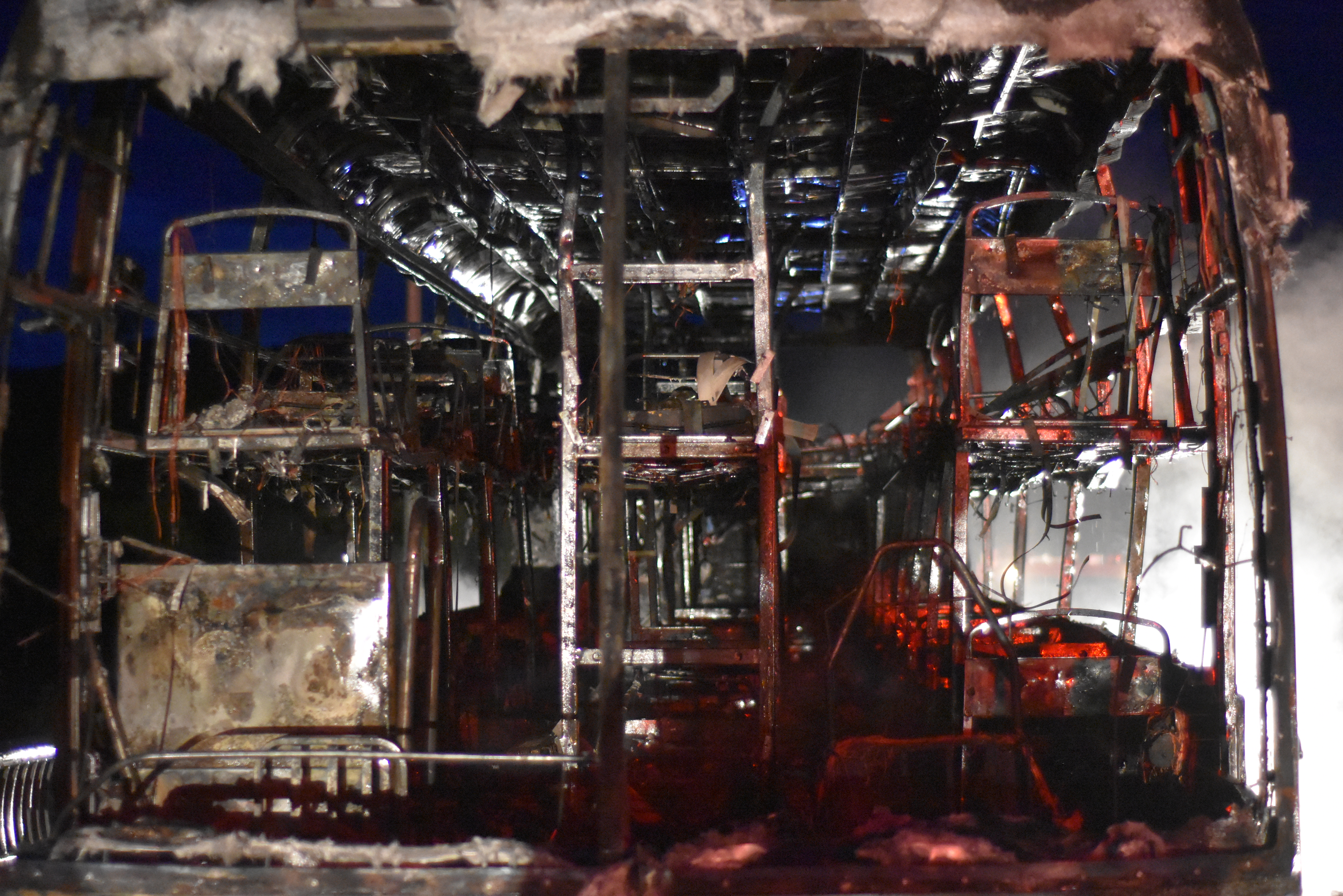 Chiếc xe khách bị cháy trơ khung. Ảnh: Nguyễn Do