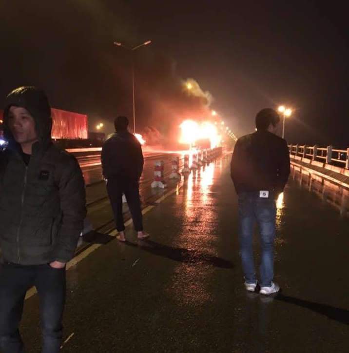 Lúc này tài xế xe khách hốt hoảng tháo chạy ra ngoài thoát thân. Chỉ sau ít phút, khói đen phủ kín mặt đường, ngọn lửa nhanh chóng bao phủ toàn bộ chiếc xe giường nằm.