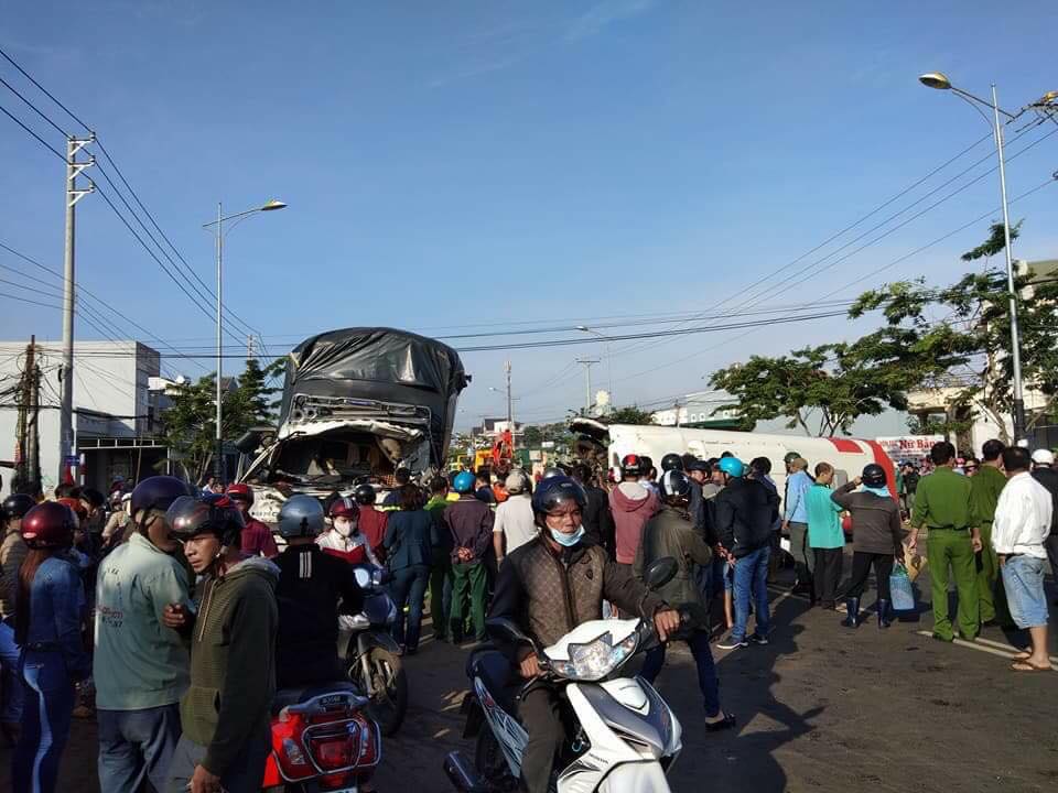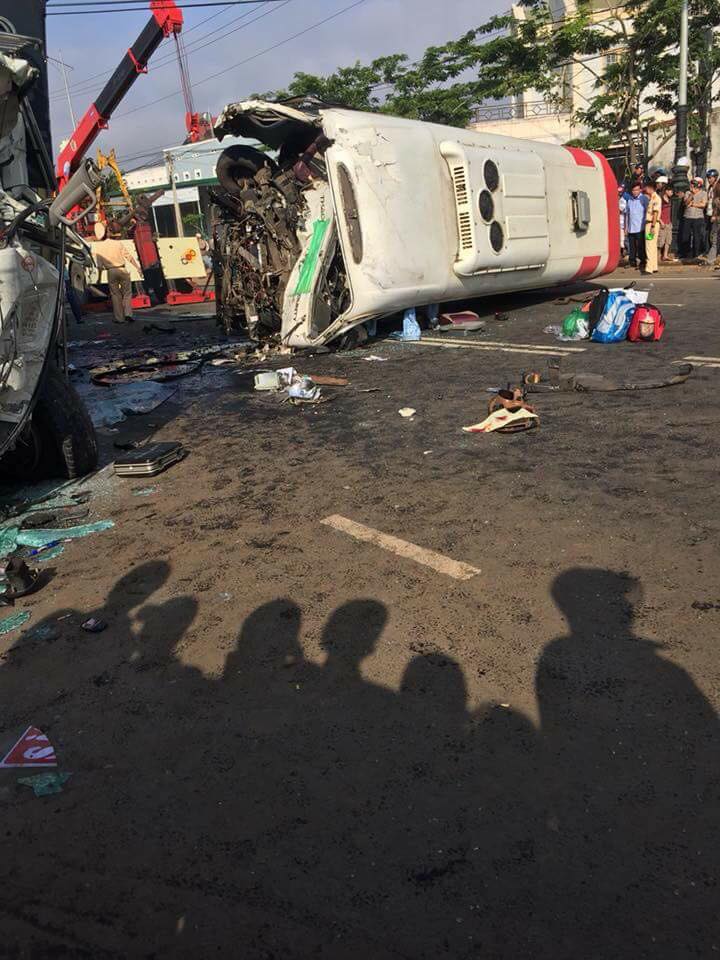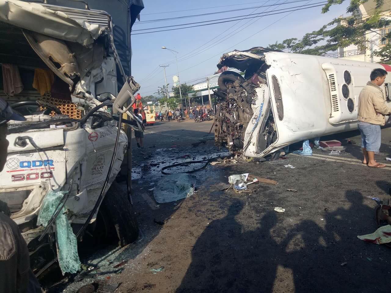 Cú va chạm mạnh làm xe khách lật ngang, 2 đầu xe bể nát hư hỏng nặng.Nhiều mảnh vỡ văng tung tóe trên đường. Hậu quả, làm 1 người tử vong và 10 người bị thương. Vụ việc làm nhiều người dân hiếu kỳ đến theo dõi khiến giao thông qua khu vực ùn ứ.