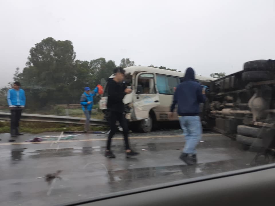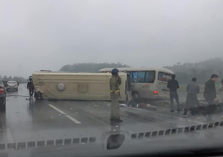 Theo đó, vào thời điểm trên, xe khách mang biển kiểm soát 22B-005xx không giữ khoảng cách đã đâm vào xe khách mang biển kiểm soát 21B-000xx. Vụ tai nạn khiến một xe khách bị lật chắn ngang đường, một xe khách hư hỏng nặng phần đầu. Vụ tai nạn khiến ít nhất 2 người bị thương phải nhập viện.