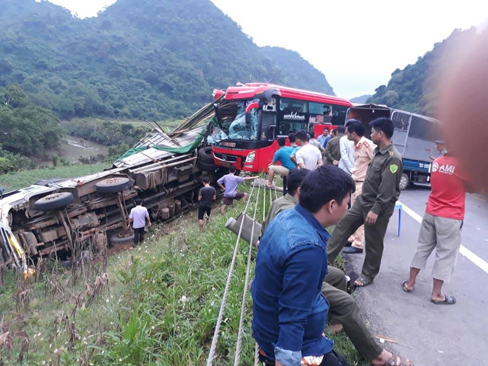 Cú va chạm mạnh khiến đầu ô tô khách hư hỏng nặng, đuôi xe tải lật nghiêng xuống vệ đường. Toàn bộ mọi thứ trên xe bị đổ ra ngoài. Vụ tai nạn khiến hai người tử vong gồm tài xế xe tải tên Bùi Văn Th. (sinh năm 1995, ở huyện Ngọc Lặc, tỉnh Thanh Hóa) và nữ hành khách Lê Thị Phương Tr. (sinh năm 1999, ở huyện Nghĩa Đàn, tỉnh Nghệ An). 14 nạn nhân bị thương đã được đưa đến bệnh viện cấp cứu.