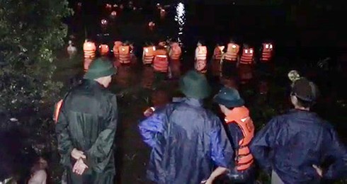 Lực lượng chức năng có mặt phối hợp tìm kiếm nạn nhân. Ảnh:VOV.