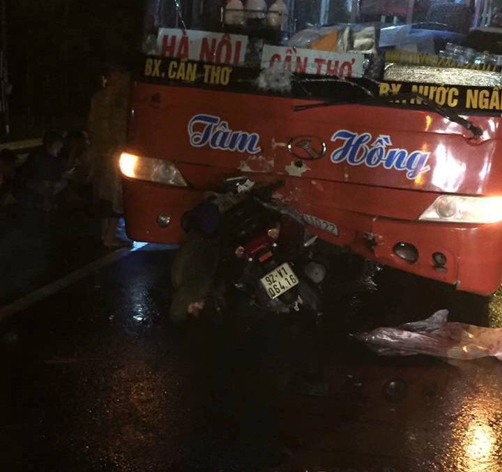 Khi đến địa bàn xã Điện Minh (thị xã Điện Bàn), xe khách bất ngờ xảy ra va chạm với xe máy mang BKS: 92V1-064.16 do chị Trần Thị Hương Gi. (30 tuổi, trú tổ Mậu Cà, thị trấn Trà My, huyện Bắc Trà My, Quảng Nam) điều khiển chở theo con gái là Trịnh Trần Nhật L. (5 tuổi).