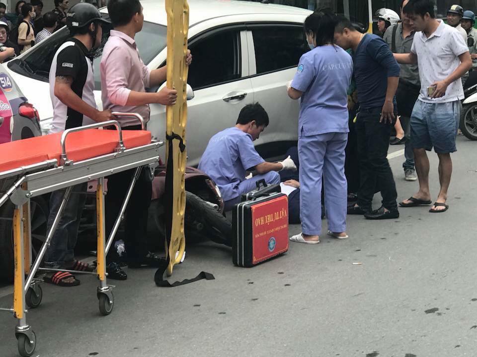 Theo một số người dân, có khoảng 2 người phụ nữ đi 2 xe máy khác nhau đã bị ngã và được đưa đi viện. Riêng chiếc xe SH nằm dưới gầm xe ô tô gây tai nạn thì do đàn ông điều khiển cũng nhập viện, người phụ nữ ngồi sau bắn ra ngoài chỉ bị thương nhẹ.