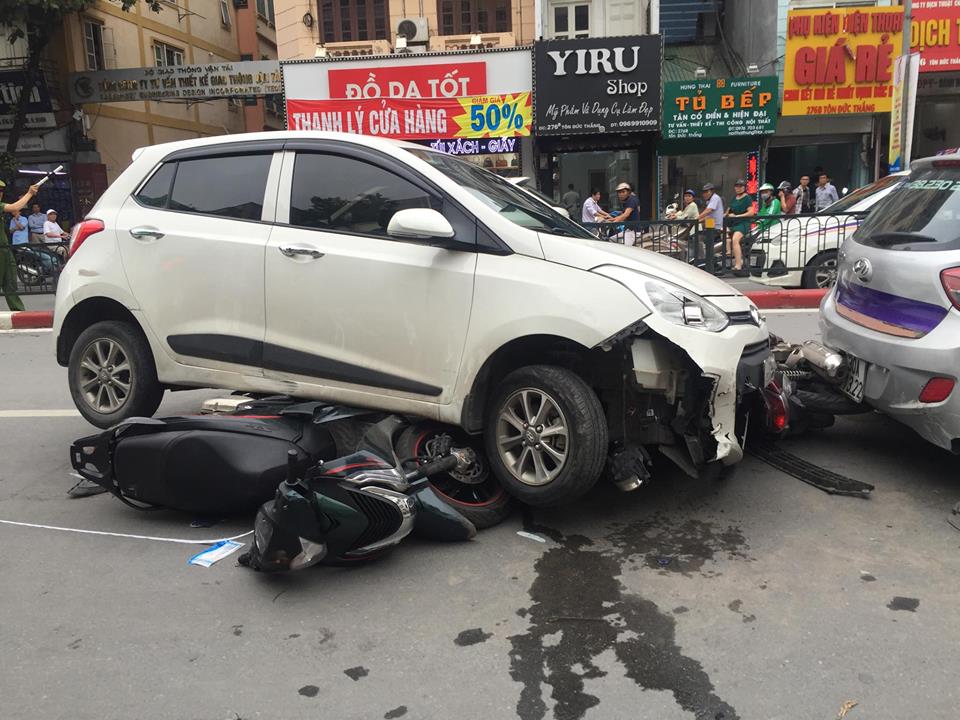 Khi vừa qua ngã 5 Ô Chợ Dừa, chiếc xe con va chạm và đâm đổ xe máy do một phụ nữ điều khiển. Chưa dừng lại đó, chiếc xe này đâm liên tiếp vào 3 chiếc xe máy khác trên đoạn đường khoảng 100 mét mới chịu dừng lại khi đâm vào đuôi chiếc xe taxi.