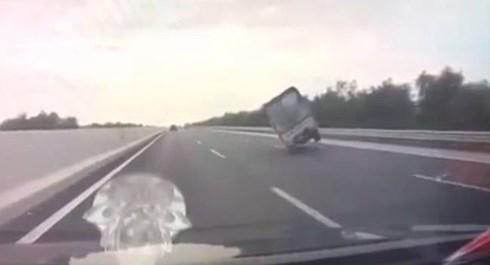 Trưa 5/1, trên mạng xã hội xuất hiện video clip ghi lại hình ảnh một chiếc xe tải chở hàng đang lưu thông trên cao tốc với vận tốc cao thì bất ngờ đánh võng nhiều vòng, sau đó tông vào lan can đường rồi lật ngang giữa đường cao tốc.