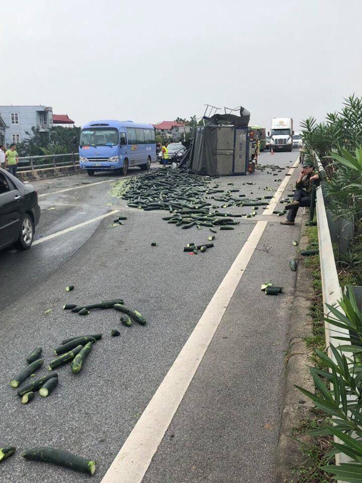Vụ việc khiến toàn bộ bí trên xe tải rơi lăn lóc xuống đường. Xe tải bị bẹp dúm cabin, nằm chắn một nửa mặt đường cao tốc. Một số nhân chứng cho hay, tài xế và phụ xe tải bị mắc kẹt trong cabin được nhiều người hỗ trợ đưa ra ngoài.