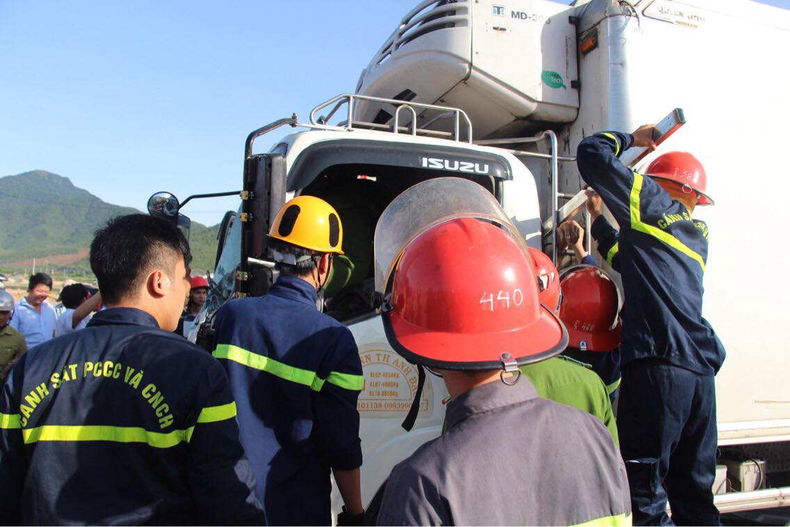 Thông tin ban đầu, khoảng 6h50 ngày 6/7, Cảnh sát PC&CC TP Đà Nẵng nhận được tin báo yêu cầu hỗ trợ cứu nạn 2 người bị mắc kẹt trong cabin xe tải do tai nạn giao thông tại đường tránh Nam Hải Vân, đoạn qua thôn Quan Nam 1, xã Hòa Liên, huyện Hòa Vang.