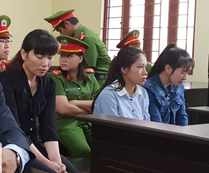 3 bảo mẫu mầm non Mầm Xanh tại tòa, từ trái sang: Linh, Đào, Huỳnh. Ảnh: Người lao động.