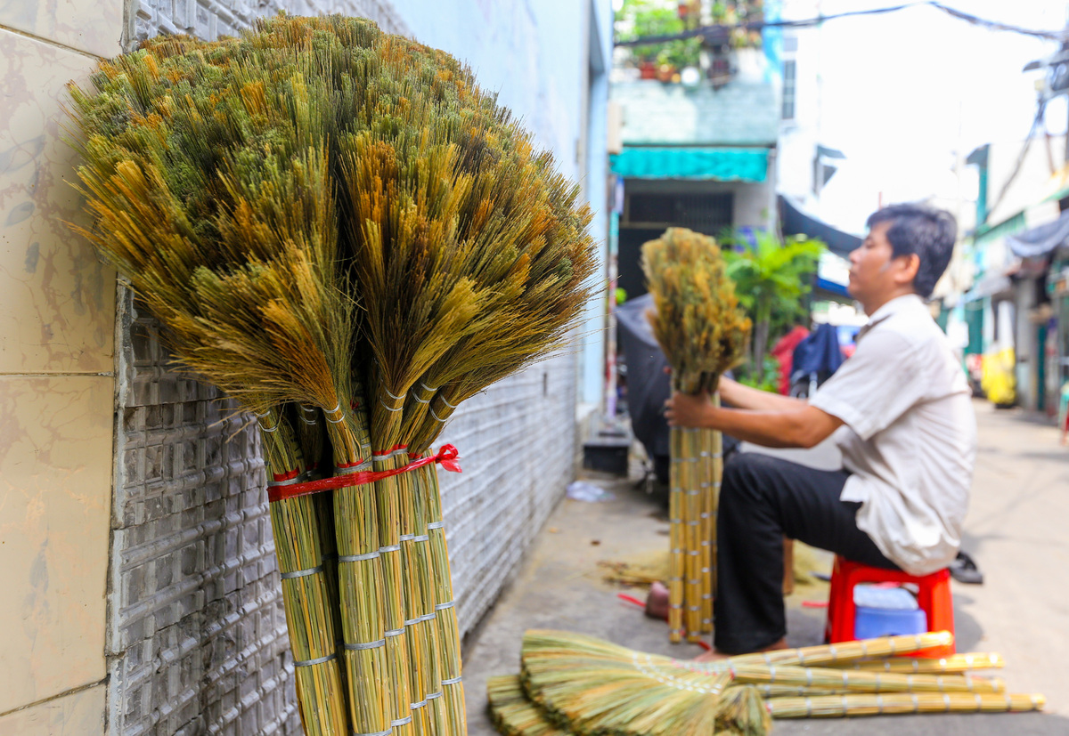 “Trước đây, hầu hết nhà trong hẻm đều làm chổi đót, còn giờ thì chưa đến 10 hộ theo nghề này, mà chủ yếu là người lớn tuổi làm thôi”, ông Lê Hoài Hồng (63 tuổi) chia sẻ.