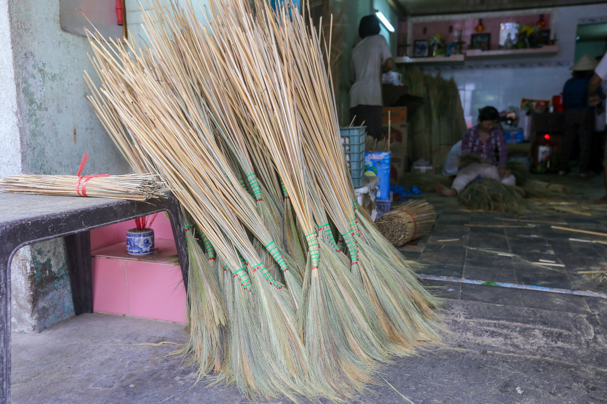 “Chổi được bán khắp nước và xuất khẩu cả ra nước ngoài. Nghề này làm thủ công, lại rất bụi bặm mà thu nhập không cao nên mai một dần. Mỗi cây sau khi trừ hết chi phí cũng chỉ lời vài nghìn đồng, chủ yếu làm để giữ nghề thôi”, ông Đức Anh (48 tuổi) chia sẻ.