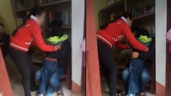Đứa trẻ kiên quyết không theo mẹ. Ảnh cắt từ clip