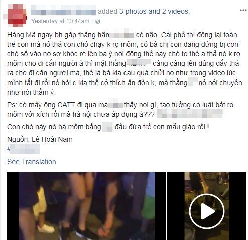 Trước thái độ hốt hoảng của người phụ nữ và em nhỏ, chủ chó một mực cho rằng việc thả rông chó to như thế này là bình thường. Ảnh: FB PLXH