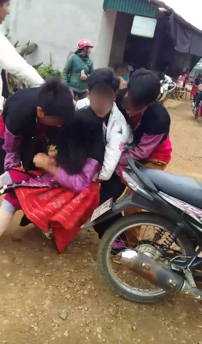 Lúc này, một phụ nữ lớn tiếng nói: “Khiếp, còn bé thế này người ta còn đi học chứ…”. Tuy nhiên, những thanh niên trên vẫn cố gắng bắt cô gái lên xe máy nhưng không được. Sau đó, người phụ nữ lại lớn tiếng nói: “Em nó còn bé, cho em nó về đi… em này mới chỉ lớp 7 - lớp 8 chứ mấy. Đợi em nó lớn tý rồi năm sau lấy…”. Sau đó, những người này mới chịu rời đi.