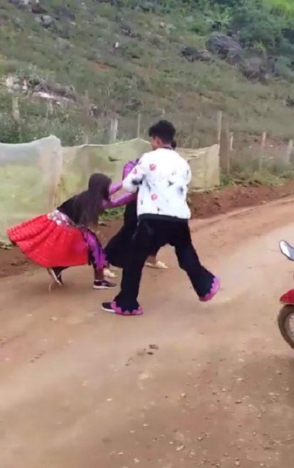 Sau đó, người phụ nữ tiếp tục hỏi “Có được yêu không nhỡ bắt như thế về sau này bỏ à?”, chàng trai trả lời: “Có”. Lúc này, thanh niên trên cố gắng bắt cô gái lên xe nhưng người này khóc và chống trả quyết liệt. Thậm chí, một cô gái khác còn cầm một khúc gỗ đánh vào tay những người bắt bạn mình.