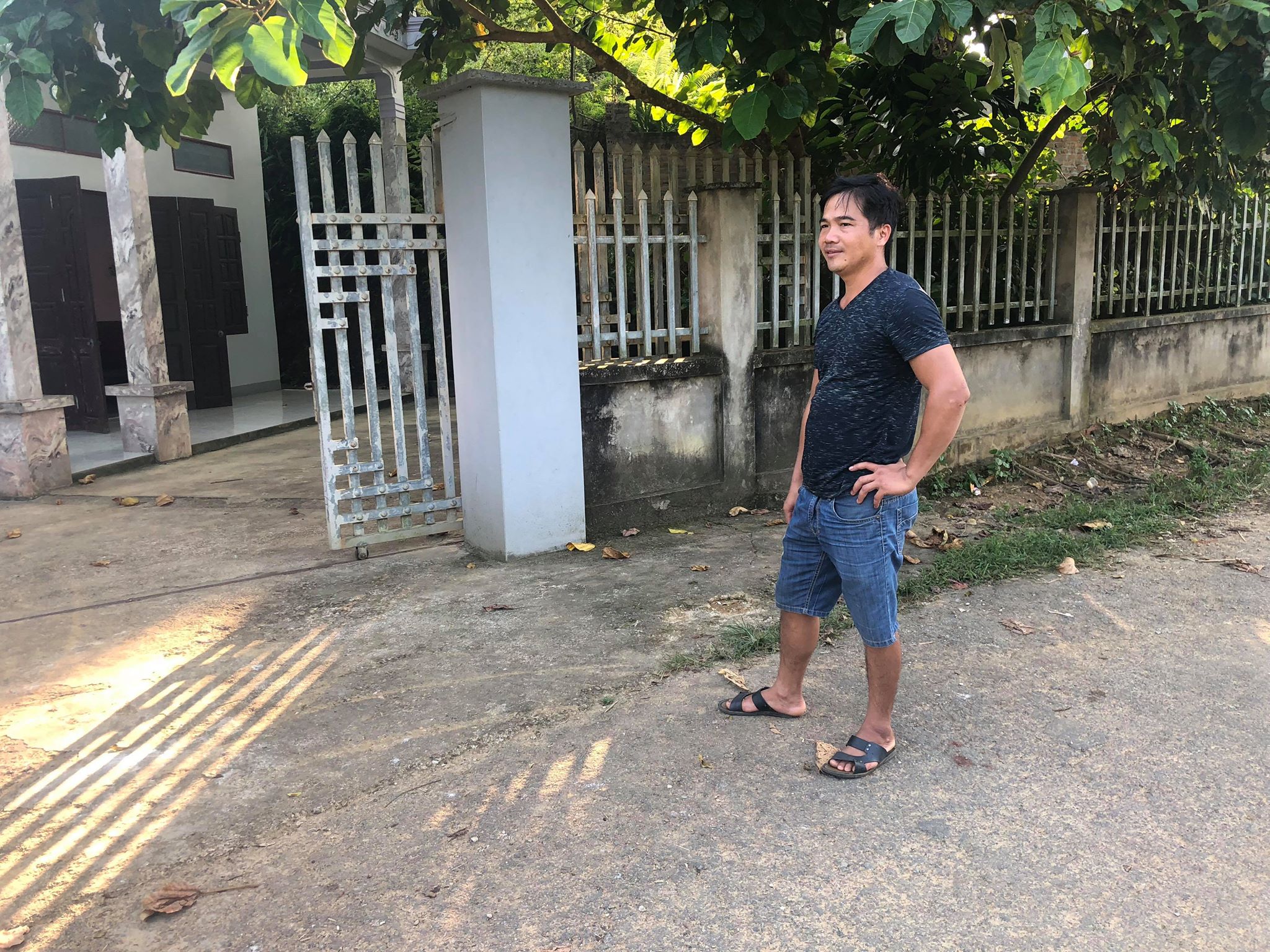 Anh Lâm, trưởng thôn Hoàng Hà, người trực tiếp đưa cháu N. đi cấp cứu tại bệnh viện Đa khoa Thanh Sơn chỉ chỗ phát hiện cháu N. nằm gục xuống đường.