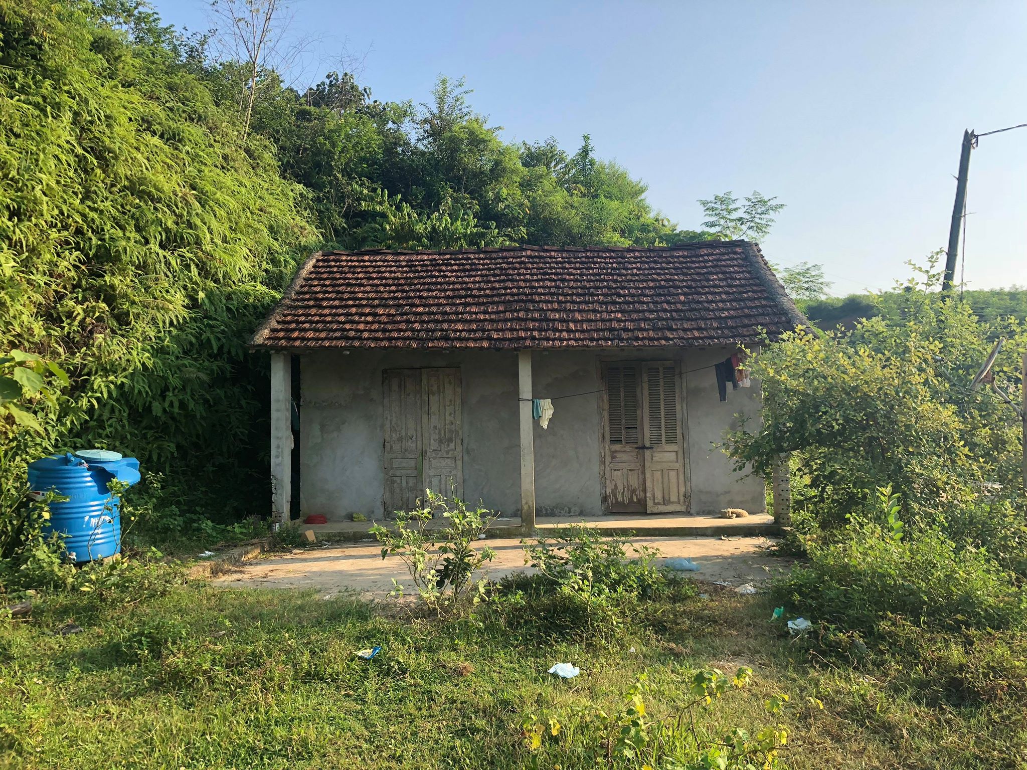 Ngôi nhà cấp 4 của Lý nhỏ bé, bên trong đồ đạc lộn xộn.