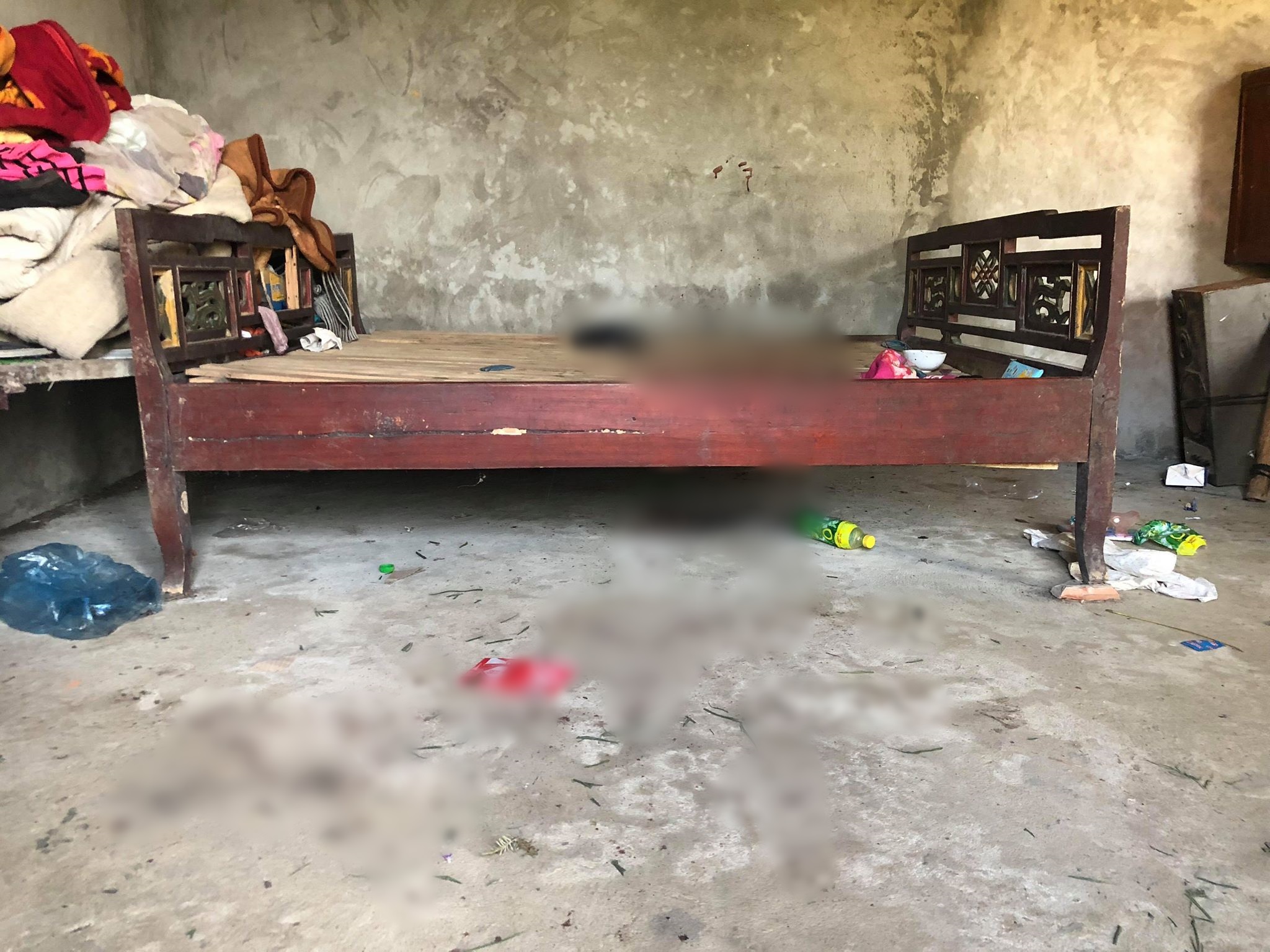 Trong căn nhà của Lý, chiếc giường bên tay trái có một vũng máu rất lớn chảy từ giường xuống đất và còn những vệt máu kéo dài ra tận ngoài cửa.