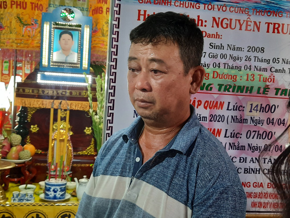 Ông Nguyễn Di Trung, cha của em N.T.K. nghẹn ngào bên di ảnh con. Ảnh: Thu Hiến/Tuổi Trẻ