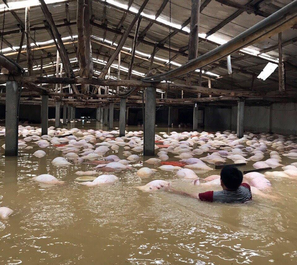 Trên mạng xã hội vừa xuất hiện những hình ảnh về một trang trại lợn bị ngập khiến gần 4000 con lợn chết trắng chuồng, nhiều người xem tỏ ra vô cùng xót xa trước hình ảnh được đăng tải.