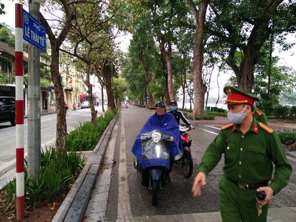 Sáng 30/3, Đội Cảnh sát giao thông trật tự, Công an quận Hoàn Kiếm (Hà Nội) trong quá trình tuần tra, nhắc nhở người dân đi thể dục sớm đeo khẩu trang đã xử lý 4 trường hợp cố tình không đeo khẩu trang khi ra đường.