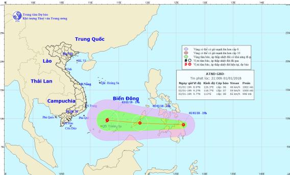 Dự báo trong 24 giờ tới, áp thấp nhiệt đới di chuyển nhanh theo hướng Tây, mỗi giờ đi được khoảng 30-35km và có xu hướng mạnh thêm. Đến 19 giờ ngày 02/01, vị trí tâm áp thấp nhiệt đới ở khoảng 9,2 độ Vĩ Bắc; 118,7 Kinh Đông, cách đảo Pa-la-oan (Philippines) khoảng 100km về phía Đông. Sức gió mạnh nhất ở vùng gần tâm áp thấp nhiệt đới mạnh cấp 7 (50-60km/giờ), giật cấp 9.