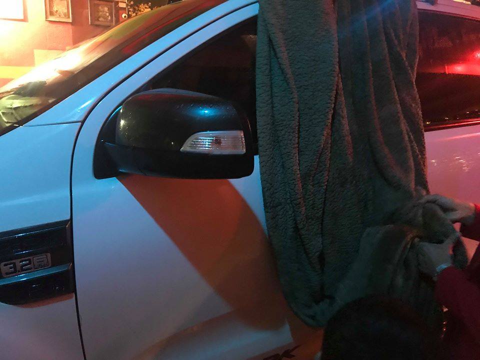 Người dân phải mang chăn ra che chắn ô tô.