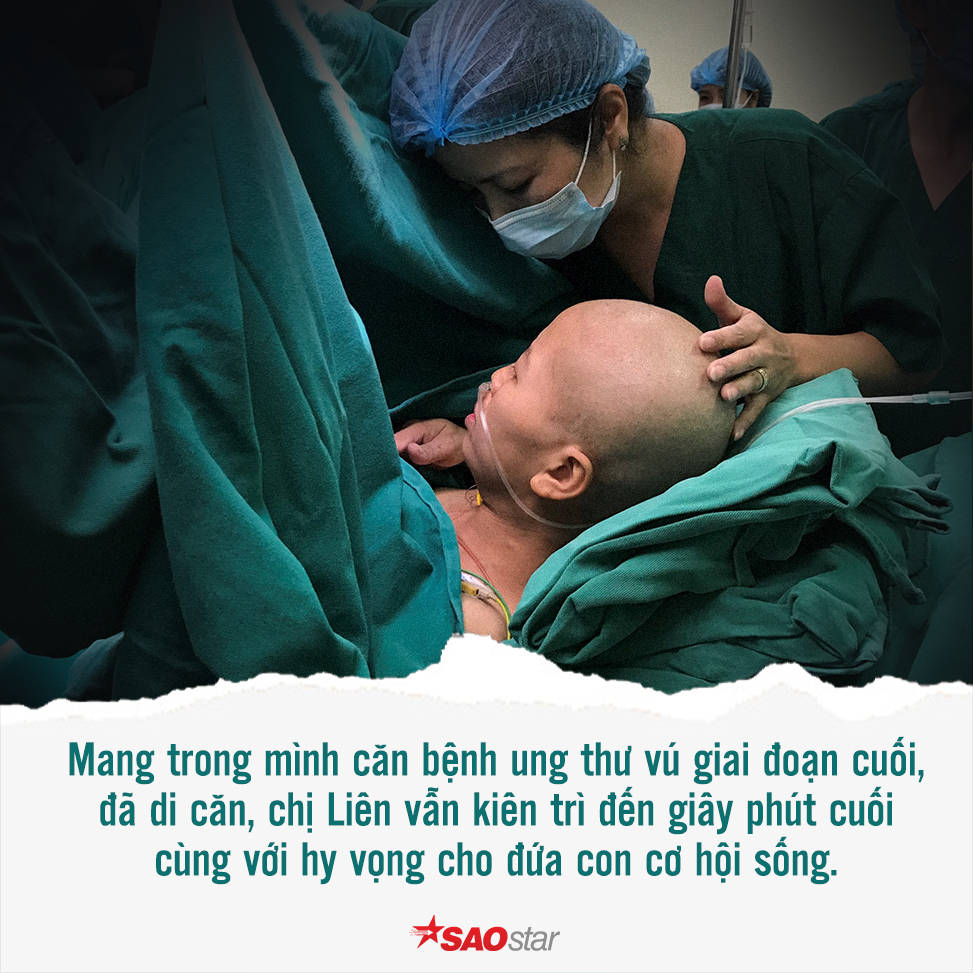 Mang trong mình căn bệnh ung thư vú giai đoạn cuối, và mặc dù đã di căn khắp cơ thể, sản phụ Nguyễn Thị Liên vẫn kiên trì đến giây phút cuối cùng với hy vọng con ở trong bụng mẹ thêm được ngày nào thì cơ hội sống của bé càng cao ngày đó. Đến nay thai đã được 31 tuần, trước diễn biến phức tạp của bệnh nhân Liên, chiều ngày 22/5, gần 20 bác sĩ bệnh viện K, bệnh viện Phụ sản Trung ương đã quyết định mổ bắt con cho thai phụ Liên.