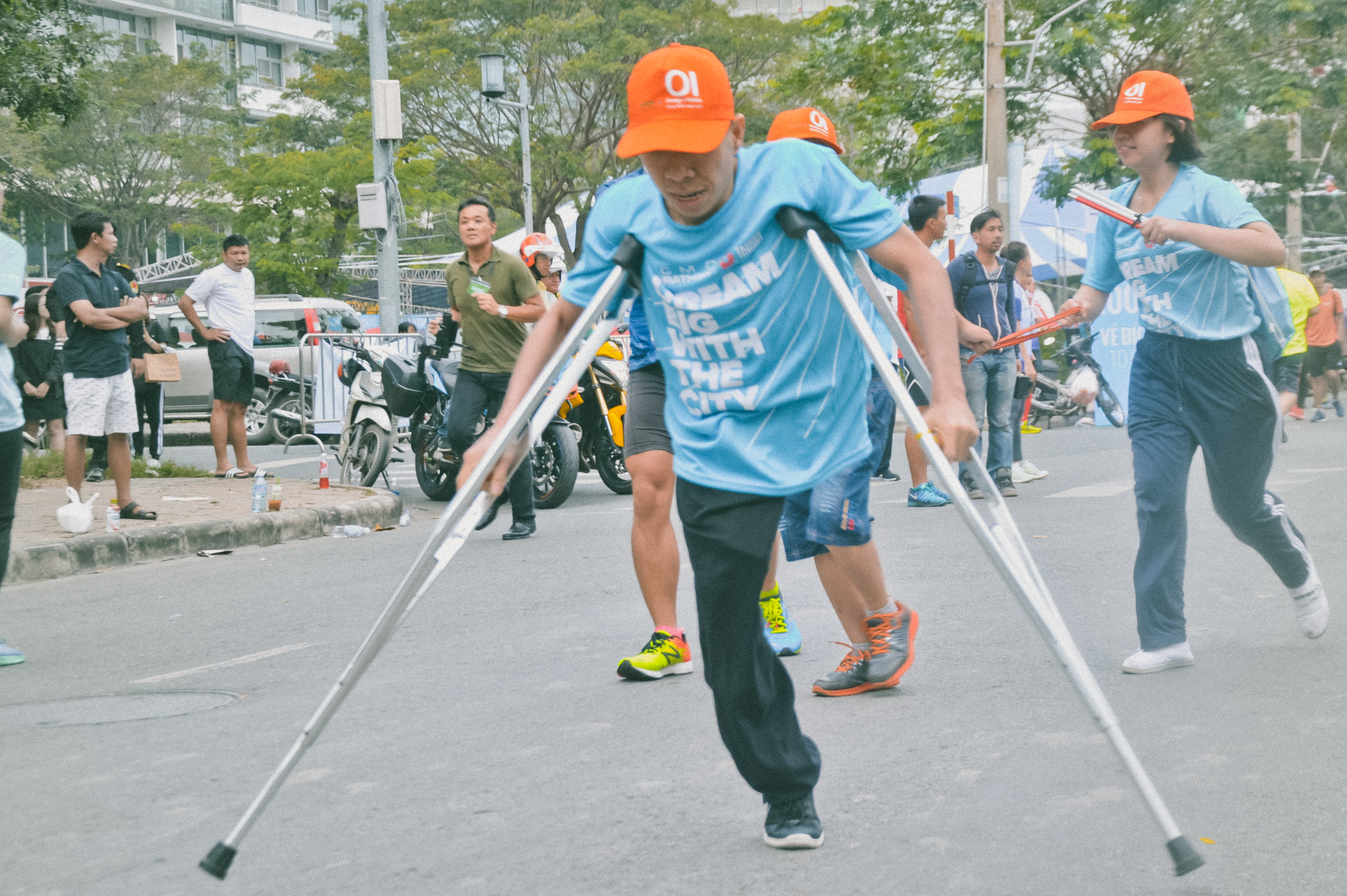 Chặng đua trở nên khó khăn với những người khiếm thị, tật nguyền… Song nụ cười rạng rỡ luôn thường trực trên môi họ.