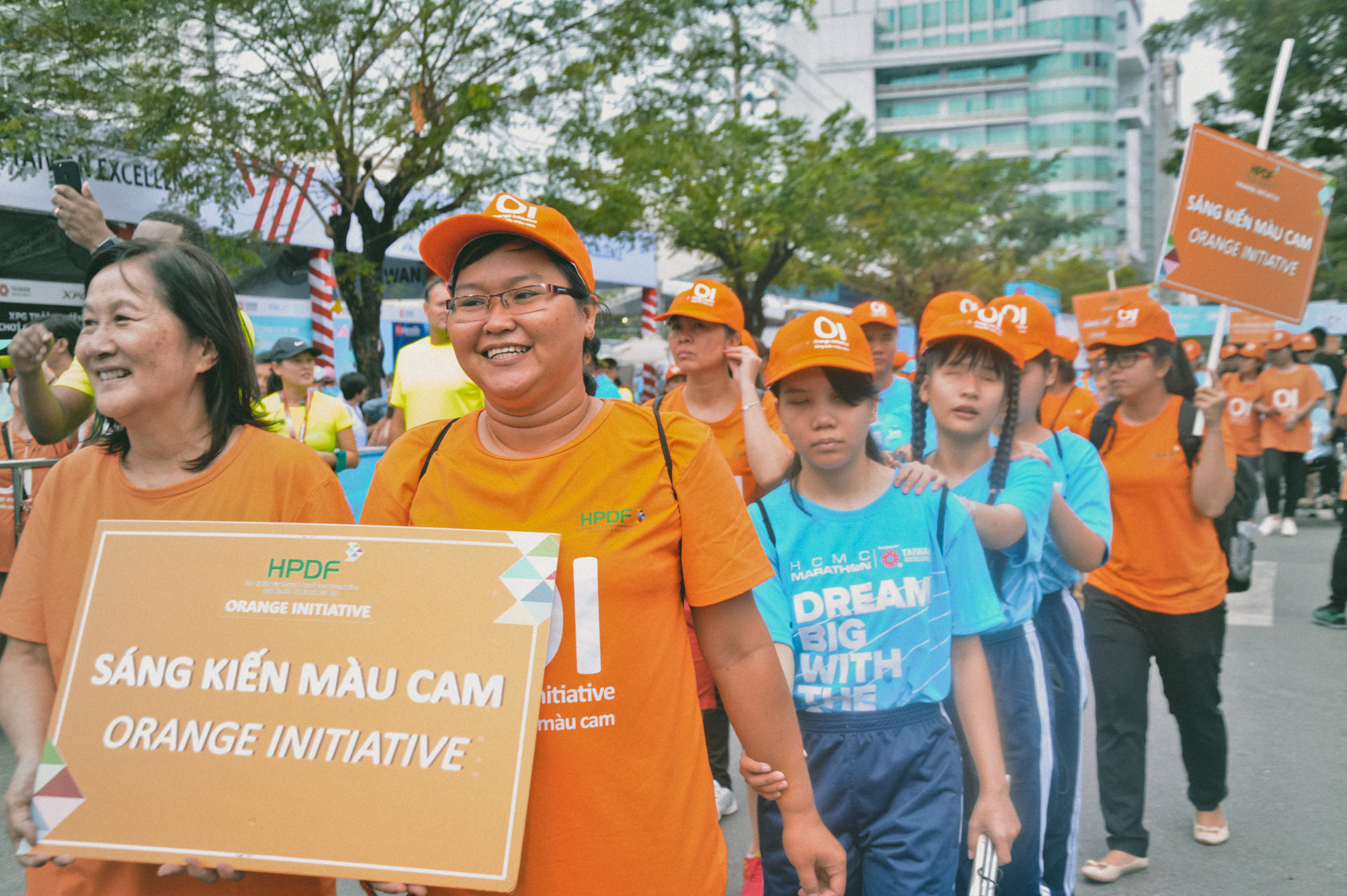 Sắc cam và trang phục đặc trưng của dự án Sáng kiến Màu cam tràn ngập đường đua 5km.