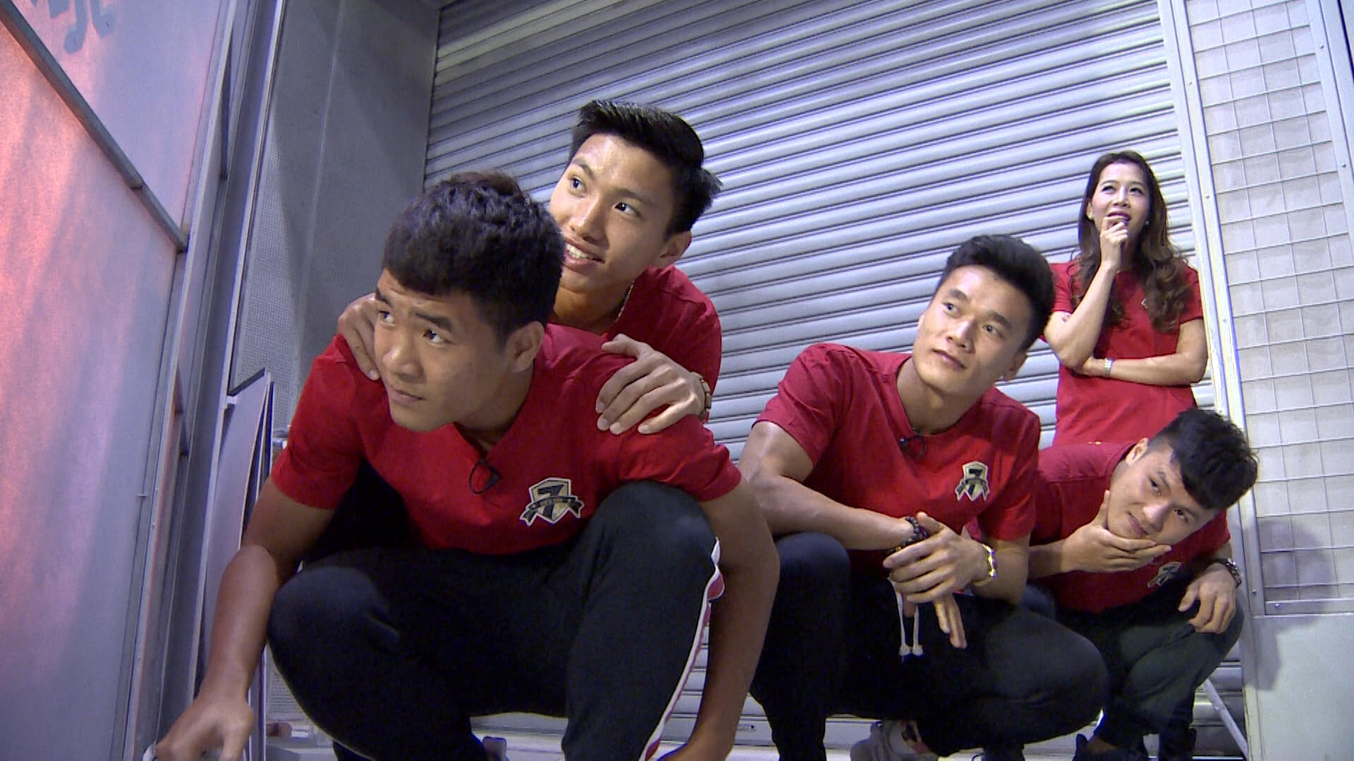 Các cầu thủ chơi bóng cùng em Tôm trong chương trình.