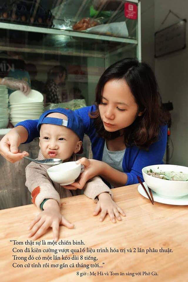 “24h của Tom” là bộ ảnh ghi lại từng khoảnh khắc em bé 4 tuổi mắc ung thư não trải qua một ngày bên mẹ và các bạn. Sau một tuần đăng tải, những hình ảnh về Tom và mẹ Hà nhận được sự quan tâm và lượng chia sẻ đông đảo của mọi người.