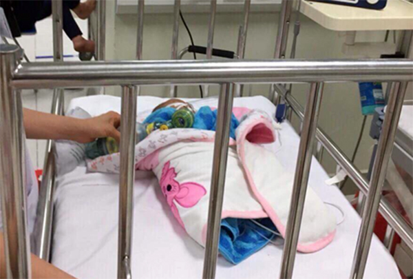 Cháu bé 3 tháng tuổi được Đại úy Nguyễn Việt Dũng đưa đến bệnh viện cấp cứu. Ảnh: CAND.