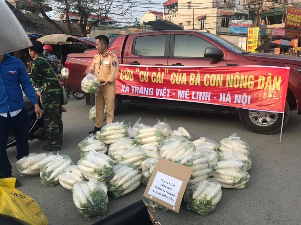 Nhận được thông tin từ các phương tiện truyền thông, thượng úy Nguyễn Duy Linh (Bí thư chi đoàn đội CSGT số 11, phòng CSGT Hà Nội) đã chủ động đề xuất với cấp ủy, ban chỉ huy đội CSGT số 11 phối hợp với đoàn xã Tiến Xuân, xã Thạch Hòa, huyện Thạch Thất đi thu mua và bán củ cải giúp nhân dân.