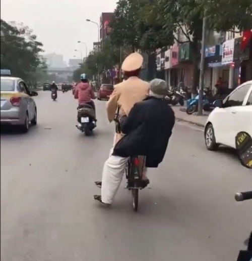 Hình ảnh chiến sĩ CSGT đi xe đạp chở cụ ông xuất hiện trên mạng xã hội hồi đầu tháng 3 vừa qua khiến nhiều người cảm phục.