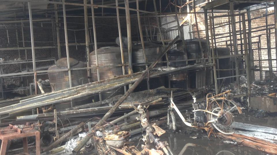 Ngay khi nhận được thông tin, lực lượng chức năng xã đã xuống hiện trường cùng hàng chục chiến sĩ PCCC và xe chuyên dụng phối hợp dập lửa. Đến khoảng hơn 10 giờ, ngọn lửa cơ bản được khống chế. Hỏa hoạn không gây thiệt hại về người nhưng đã làm cho nhà xưởng cháy rụi, nhiều xe cộ, hàng hoá bên trong bị cháy.