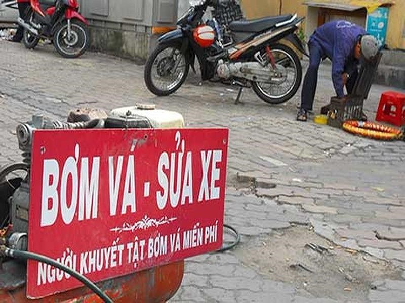 Người khuyết tật bơm vá miễn phí.