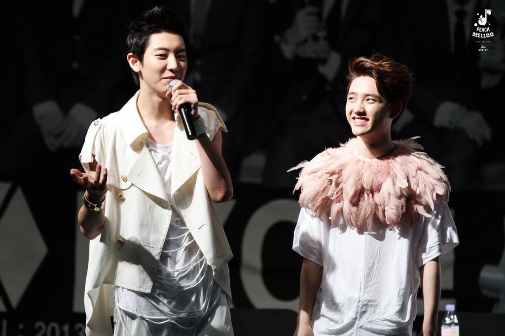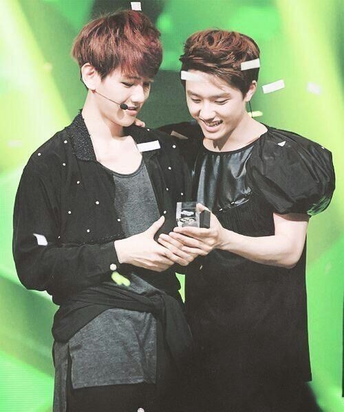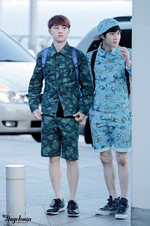 Hai thanh niên chân dài vai rộng của EXO đột nhiên trông như học sinh lớp mầm với bộ quần áo dễ thương.