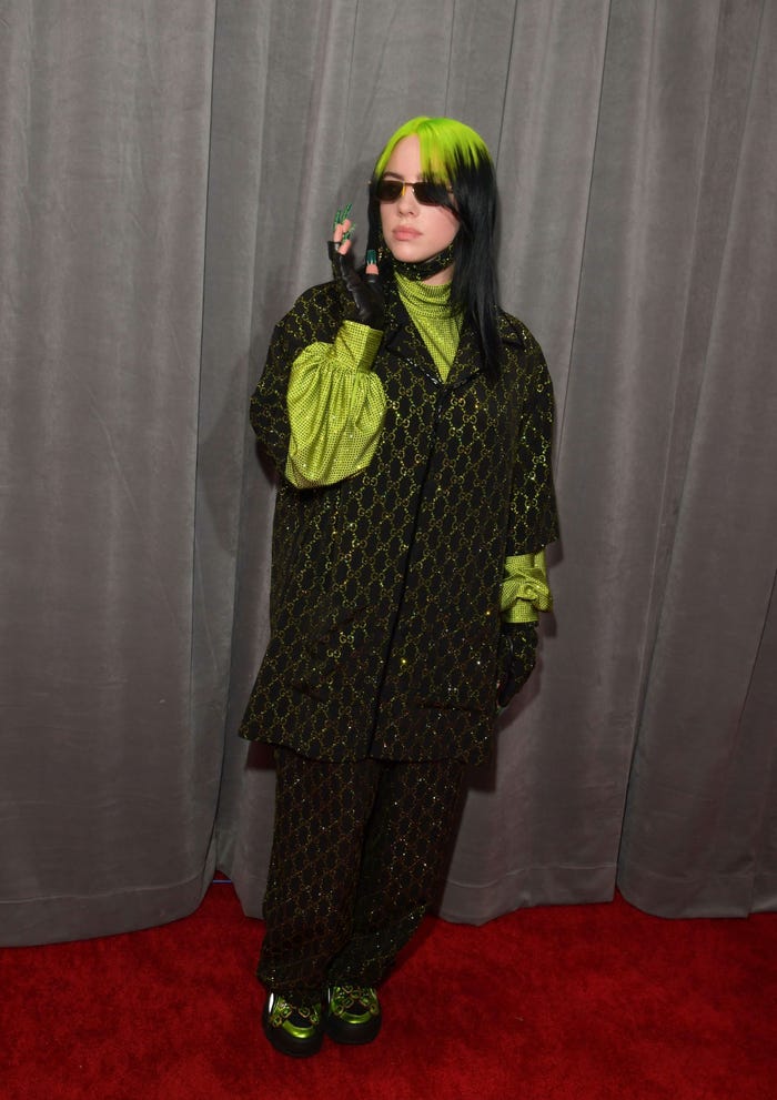 Tại Grammy 2020, Eilish mặc một cây Gucci màu xanh giống hệt với màu tóc. Mọi sự bàn tán về phong cách quái lạ đều phải gác lại khi tối hôm đó cô nàng thắng lớn với 4 giải thưởng.