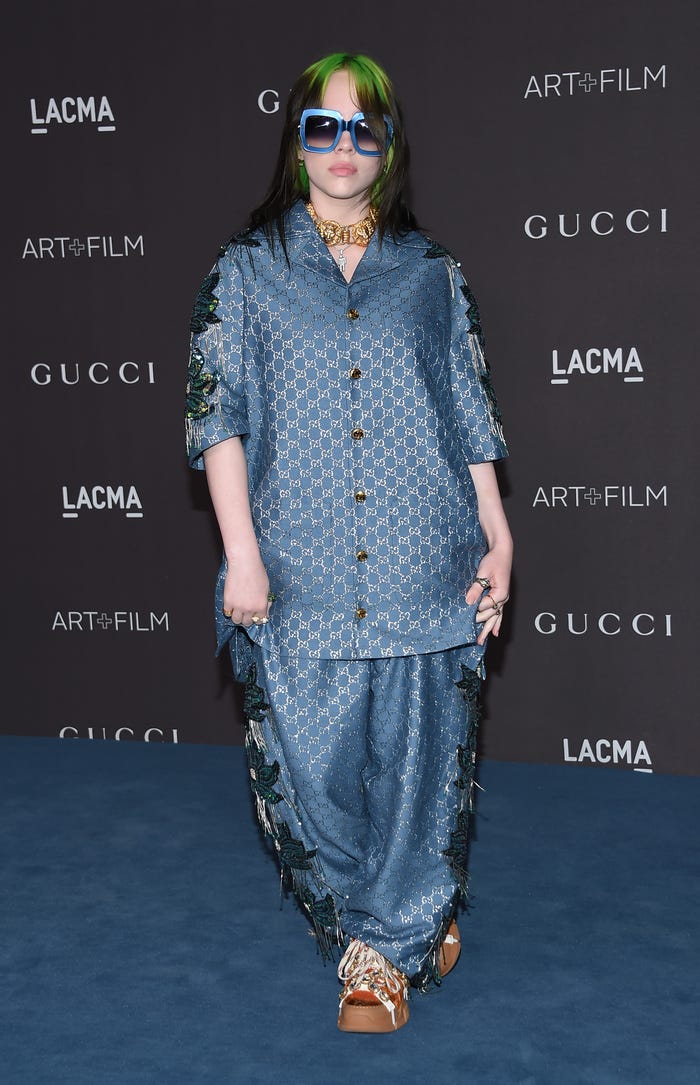 Eilish thẳng tiến đến tham dự sự kiện nghệ thuật như LACMA Art and Film Gala trong một bộ đồ ngủ. Tất nhiên bộ quần áo luộm thuộm này có xuất thân rất danh giá - Gucci.