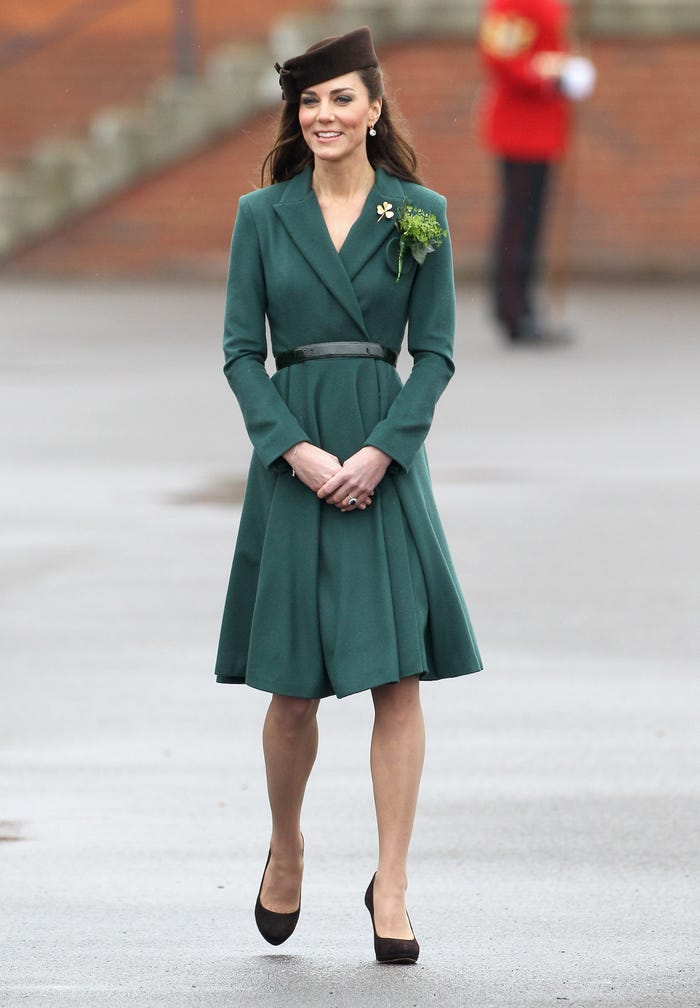 Năm 2012, Kate được tham dự ngày lễ Thánh Patrick đầu tiên dưới tư cách con dâu hoàng gia. Trông cô vô cùng thanh lịch trong chiếc áo choàng của Emilia Wickstead và chiếc mũ Lock&Co trị giá 300 đô la (6,979,719 VNĐ).
