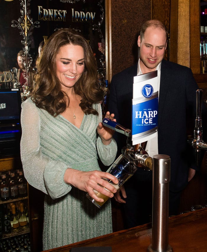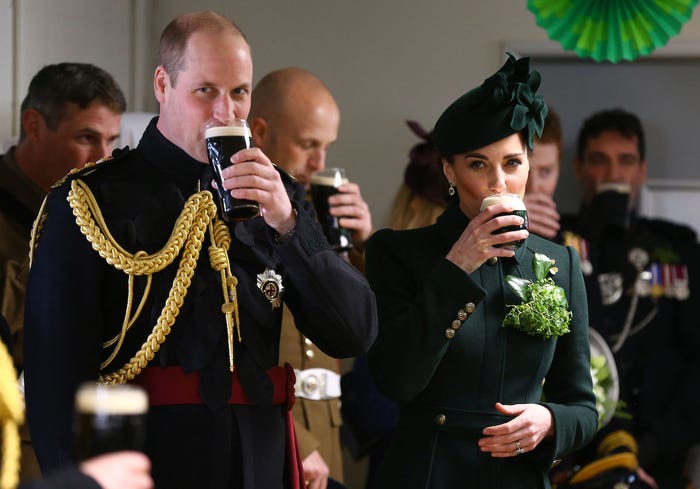 Cô mặc chiếc áo khoác Alexander McQueen trị giá 4,000 đô la (93,062,916 VNĐ) để uống Guinness cùng Hoàng tử William vào Ngày Thánh Patrick 2019.