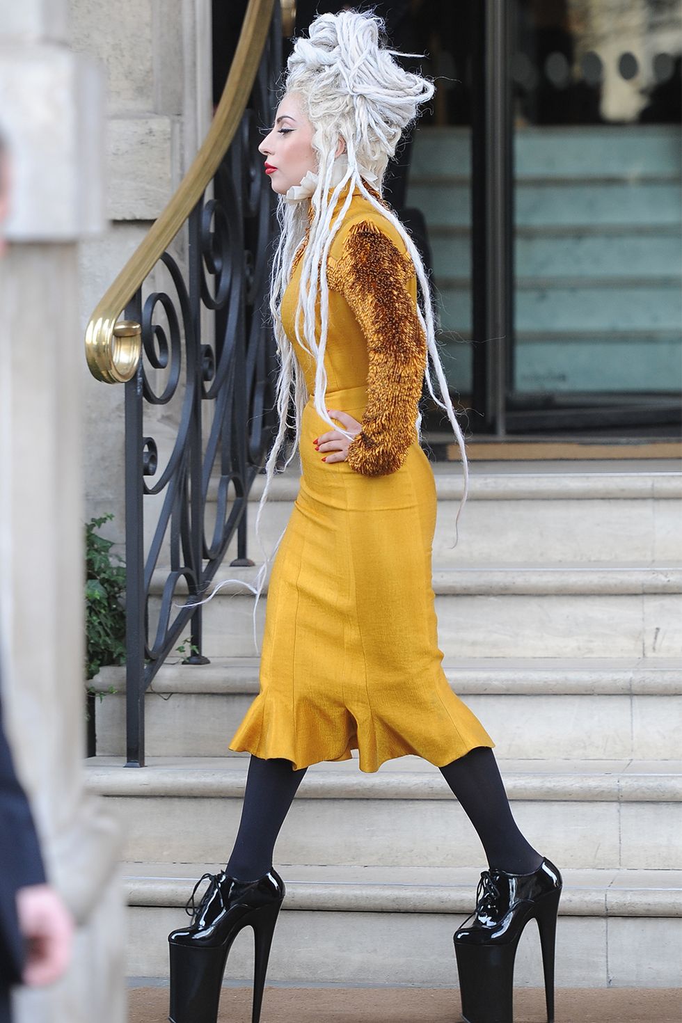Thật lạ lùng khi Lady Gaga có thể tự đi lại trên đôi giày khủng bố này.