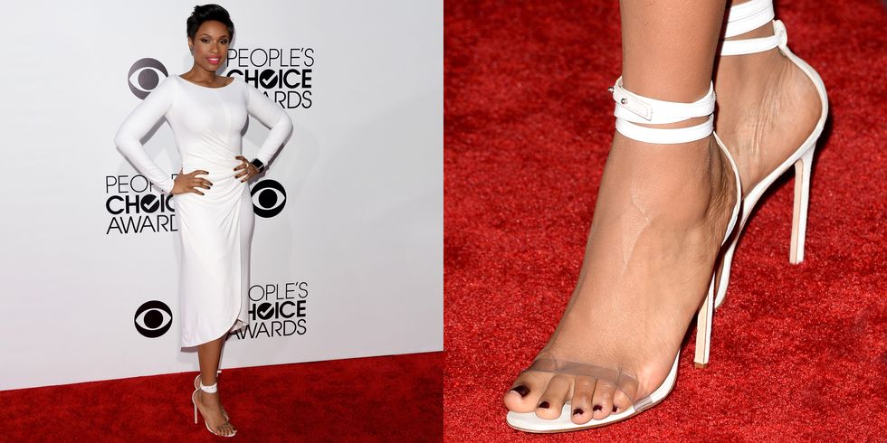 Chiếc quai trong trên đôi giày như đang ngăn máu lưu thông ở bàn chân Jennifer Hudson.