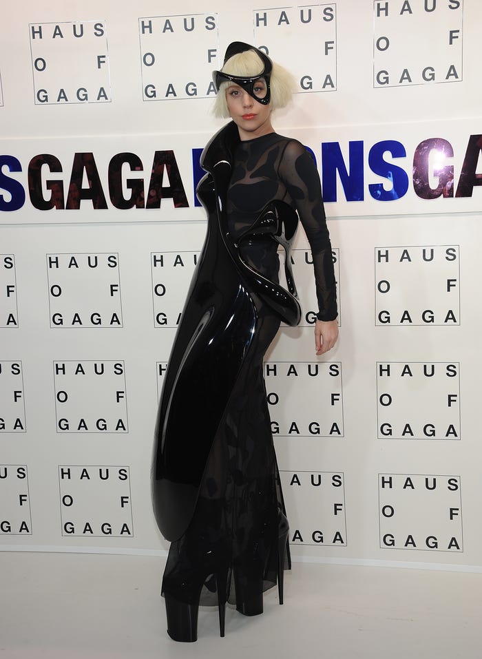 Gaga kết hợp các mảnh của nghệ thuật và âm nhạc để vinh danh album ‘Artpop’ năm 2013. Trang phục trừu tượng với nhiều chất liệu tinh tế được chính chủ mặc đến bữa tiệc phát hành album.