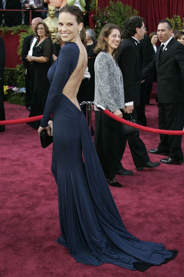 20. Năm 2005, Hilary Swank tung tăng trong bộ váy Guy Laroche màu hải quân khi đến dự Oscar. Cô nàng tự tin cũng phải bởi giải thưởng ‘Nữ diễn viên xuất sắc nhất’ được trao tận tay cô trong tối hôm đó.