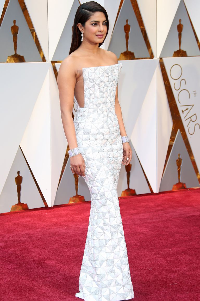 25. Năm 2017, Priyanka Chopra mang đến Oscar một chiếc váy gây tranh cãi. Cứng nhắc, gợi cảm, nhạt nhẽo, sáng tạo? Dù bạn cảm thấy thế nào thì Priyanka vẫn tranh thủ khoe thân hình bốc lửa nhờ chiếc váy khó mặc.