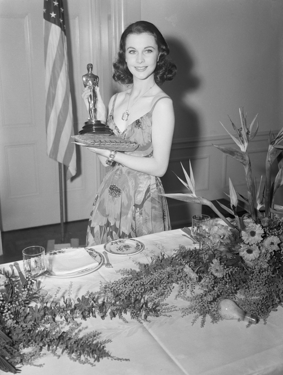 Vivien mặc váy dạ hội lộng lẫy của Irene Gibbons, một nhà thiết kế trang phục nổi tiếng. Cô ấy càng xinh đẹp hơn với chiếc vòng cổ Van Cleef & Arpels được tặng bởi vị hôn phu Laurence Olivier. Đêm đó, cô giành Oscar ‘Nữ diễn viên xuất sắc nhất’ cho vai diễn trong ‘Gone with the Wind’ (Cuốn theo chiều gió).