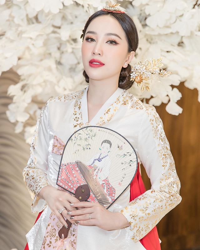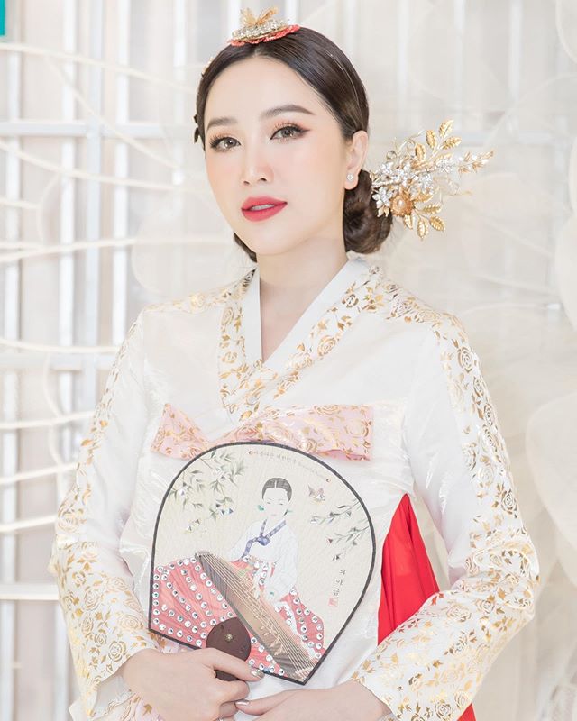 Xuất hiện với bộ trang phục truyền thống của Hàn Quốc với cách trang điểm nhẹ nhàng, mái tóc búi cao, trông Bảo Thy vô cùng đoan trang. Không những thế, biểu cảm nhí nhố, tạo dáng đáng yêu khiến nhiều người thích thú.