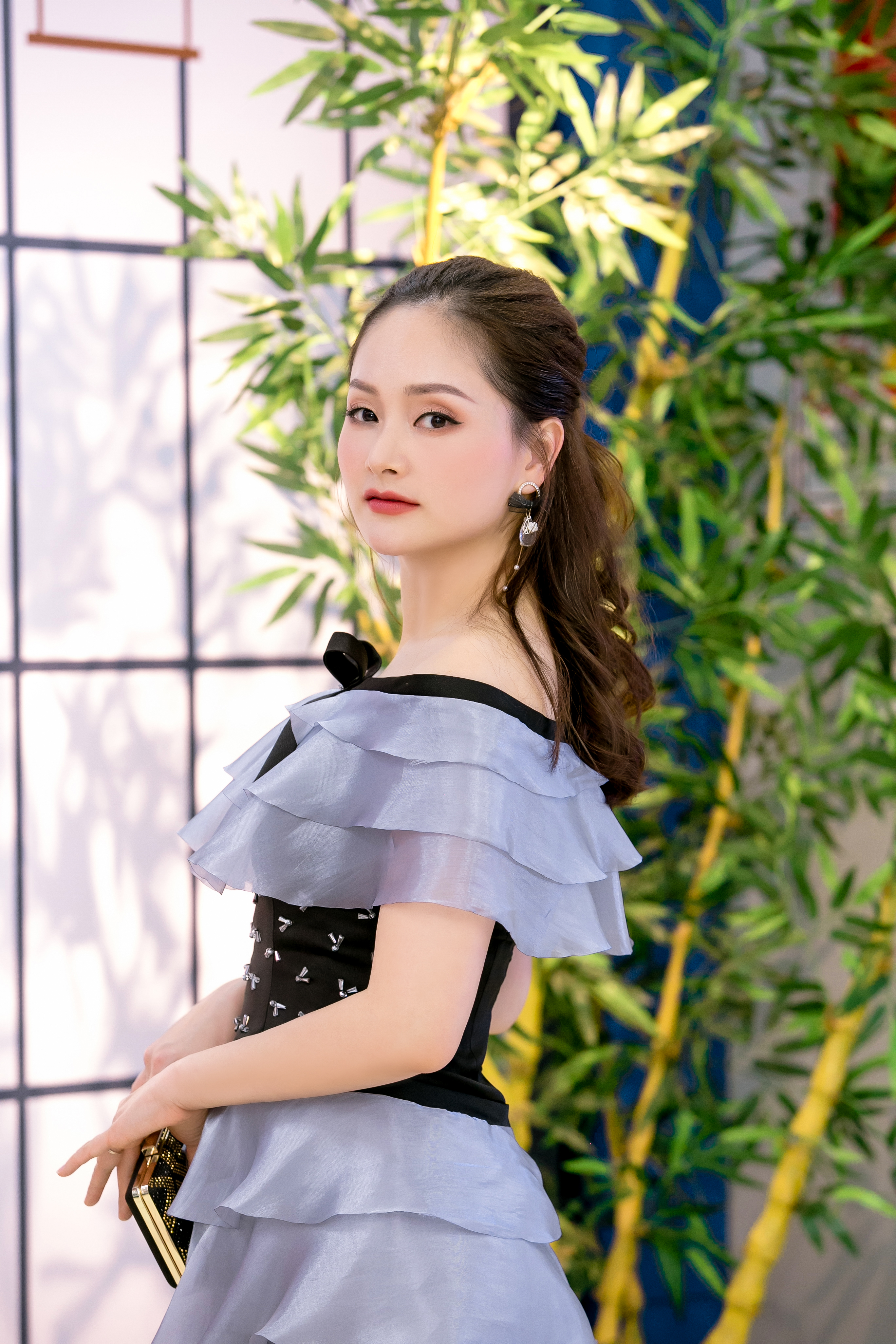 Cô khép léo phối hợp cùng tông trang điểm tự nhiên tinh tế làm toát lên khí chất dịu dàng đầy nữ tính.